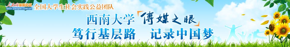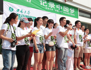 西南大學“傳媒之眼”社會實踐隊由新聞傳媒學院團委老師李海峰、范曦帶隊,8名研究生、19名本科生組成。團隊圍繞“篤行基層路,記錄中國夢”的主題,自7月3日開始,從建設生態北碚、“百姓中國夢”主題宣講、“幸福重慶”人文記錄、“山城百姓”社會調查四個方面開展活動。團隊已經在歇馬鎮碚青路中心廣場舉行了文藝匯演,并給群眾帶來了各種各樣的避暑藥品;到歇馬污水處理廠,了解當地生產生活污水的處理;到重慶歇馬機械曲軸有限公司,宣傳“節能生產”理念,在員工中開展環保培訓,強調可持續生產和發展。