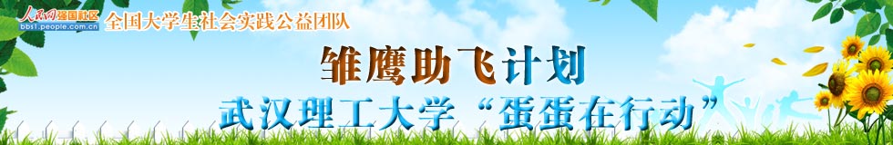 武漢理工大學(xué)“蛋蛋在行動(dòng)”成立于2011年12月,是一支致力于開展包括支教在內(nèi)的公益活動(dòng),援助山區(qū)貧困學(xué)生的公益團(tuán)隊(duì),目前擁有成員89人。2年多來,舉辦的活動(dòng)有暑期支教、蛋蛋公益文化周、暖冬行動(dòng)、聯(lián)合余區(qū)六院青協(xié)為胡夢婷募捐、愛心義賣等活動(dòng),吸引廣大師生參與,累計(jì)覆蓋人數(shù)超過一千人,募集款項(xiàng)18738.42元、物品五千余件。