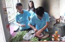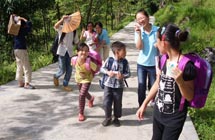 我被分到了第三組,也是這次家訪去的最遠(yuǎn)的地方。和董啟凡,楊愫愫等隊(duì)員一起需要走過崎嶇不平的山路,爬上一座一千多米的高山。有的隊(duì)員穿的是短褲,當(dāng)?shù)厣缴嫌幸环N草是有著尖利的刺,劃傷了隊(duì)員的腿,這提醒了我們出去家訪一定要穿長褲。一個(gè)半小時(shí)后,他們到了第一位學(xué)生陸純的家里。陸純的家由于在建新房,全家人在簡易帳篷里生活,條件十分簡陋。志愿者受到了陸純家長的歡迎,陸純的班主任沙士博也跟家長溝通了陸純?cè)趯W(xué)校的表現(xiàn)和情況。陸純是一個(gè)比較聰明的孩子,數(shù)學(xué)成績比較好,但平時(shí)比較貪玩,上課的時(shí)候不愿意舉手發(fā)言。班主任把這些情況反映給家長后,陸純的媽媽表示以后一定多多抽時(shí)間來多關(guān)心孩子的學(xué)習(xí)和生活。最后隊(duì)員董啟凡幫一家人拍了一張全家福...[詳細(xì)]>>>