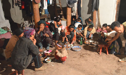 對(duì)于偏遠(yuǎn)山區(qū)的貧困與落后,雖然隊(duì)員們?cè)缬行睦頊?zhǔn)備,但實(shí)際到了兩河口鎮(zhèn),當(dāng)?shù)仄D苦的條件還是遠(yuǎn)遠(yuǎn)超出了這群在大城市里生活慣了的年輕人的想象。沒(méi)有網(wǎng)絡(luò),白天斷電,有時(shí)為了發(fā)送一條短信打一個(gè)電話(huà)需要走很遠(yuǎn)的路才會(huì)有信號(hào)。飲食也是一大挑戰(zhàn),實(shí)踐隊(duì)的伙食是清一色的土豆,而且一天只有兩頓土豆,這是當(dāng)?shù)氐牧?xí)俗。沒(méi)有桌子,所有人就在地上吃,沒(méi)有筷子就用手。煮的土豆吃膩了就吃烤土豆,扒皮后蘸點(diǎn)調(diào)料,吃得滿(mǎn)嘴滿(mǎn)手黑乎乎的。對(duì)于這樣的飲食方式,隊(duì)員們一開(kāi)始的確不適應(yīng),覺(jué)得有點(diǎn)落后和不衛(wèi)生,但面對(duì)彝家人的熱情好客,隊(duì)員們也就入鄉(xiāng)隨俗,和彝家人一起享用起大山里的土豆來(lái)。為了感謝隊(duì)員們的付出,彝家人偶爾也會(huì)給隊(duì)員們做蕎麥餅換換口味。