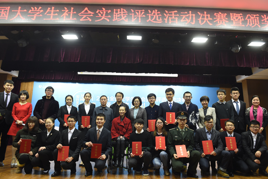共青團中央學校部副部長李驥向獲獎師生表示祝賀,并說,大學生要像今天所有的團隊一樣,“胸懷天下,關注社會上需要我們幫助的人,弘揚民族‘天下興旺,匹夫有責’的傳統,要有一種家國的情懷”,這是大學生知和行要達到的目的。