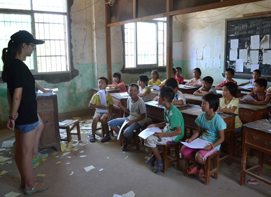 沒有多媒體,沒有地圖冊,沒有教科書,8月3日,北京林業(yè)大學(xué)岳蹊隊來到江西南昌市新建縣松湖鎮(zhèn)港西村開展暑期社會實踐,用兩支粉筆,為港西小學(xué)的孩子們描繪著外面的世界。