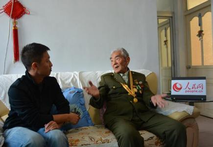 人民網記者采訪抗戰老兵史保東。(于紅林 攝)