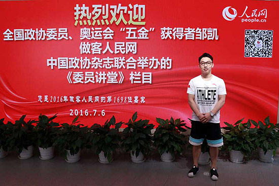 全國政協委員、奧運會“五金”獲得者鄒凱(代睿 攝)