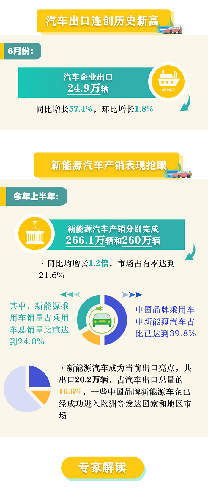 新聞數理化|穩產保供措施持續顯效 6月汽車產銷同比增幅均超20%