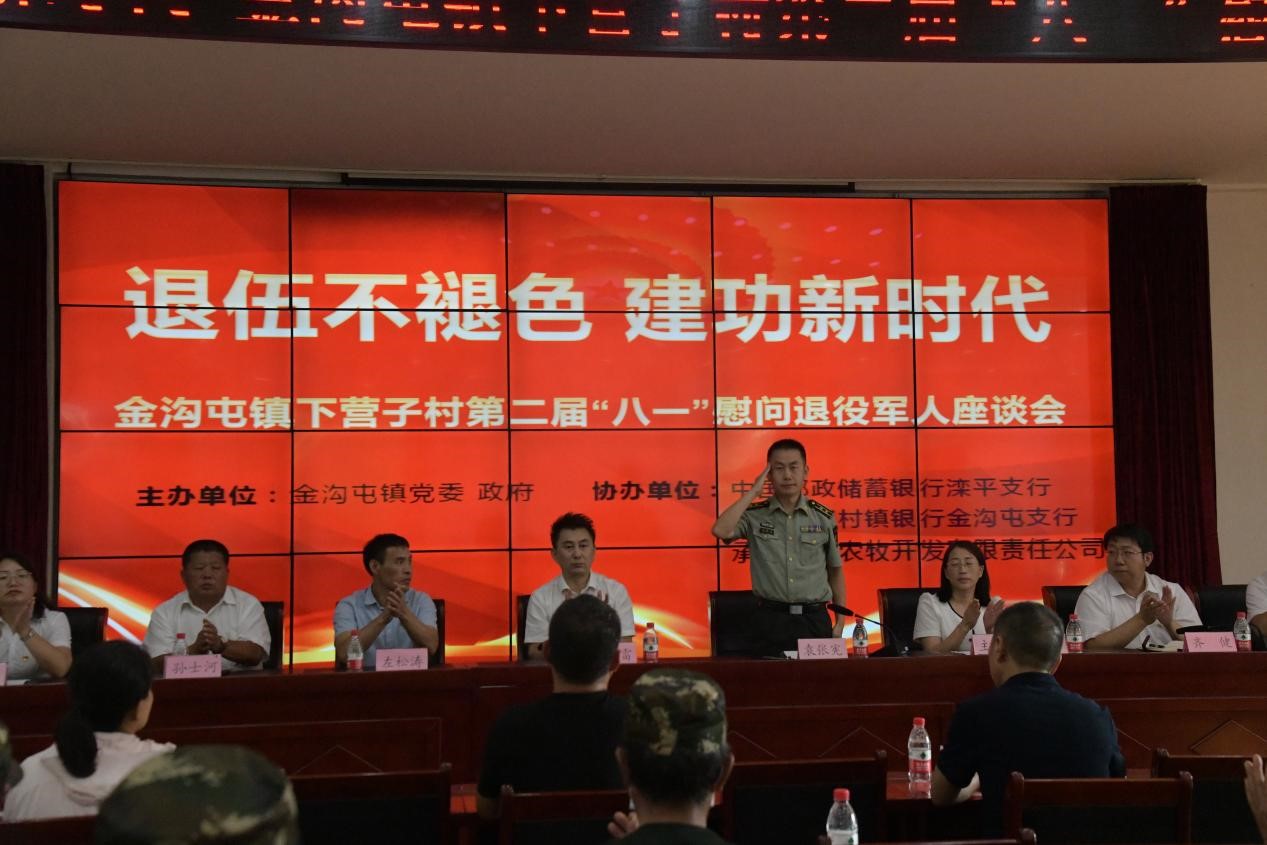 8月1日下午,灤平縣金溝屯鎮下營子村聯合愛心企業中國郵政儲蓄銀行灤平支行、灤平盛陽村鎮銀行金溝屯支行和承德久財農牧開發有限責任公司共同舉辦了“退伍不褪色 建功新時代”第二屆“八一”慰問退役軍人座談會;顒蝇F場,大家歡聚一堂,共同慶祝中國人民解放軍建軍95周年,共敘魚水深情,并為優秀退役軍人頒發榮譽證書。 王海琦 郎朗 攝
